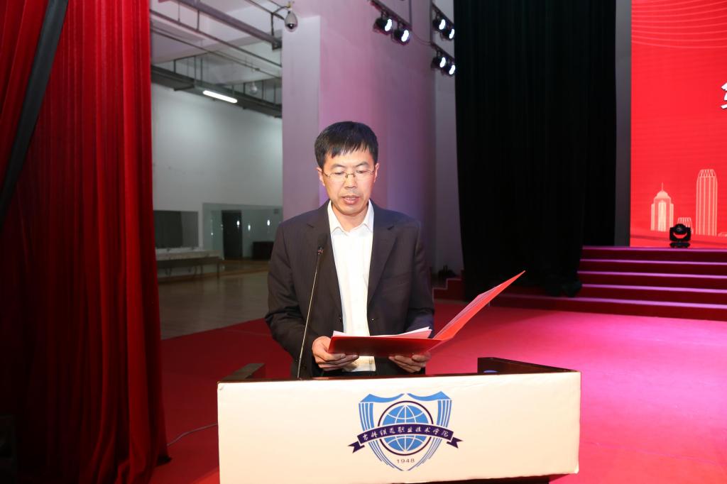 副校长王华宣读《关于表彰在2018年度国赛、省赛、第七届技能节竞赛中获奖学生和优秀指导教师的决定》