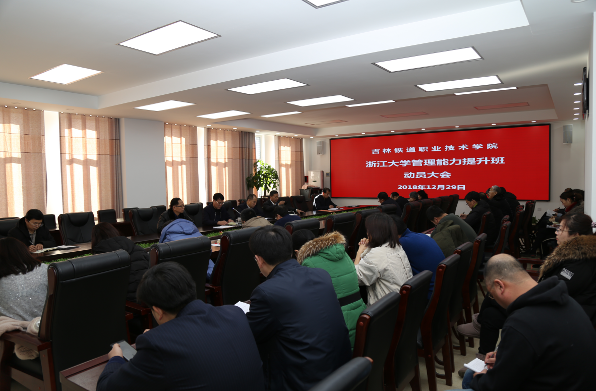 为全面提升学院领导干部思想政治素养和业务知识水平,切实增强学院干部队伍适应新时代工作的新要求,根据学院2018年干部管理能力提升培训计划,学院于1229日上午10:30,在行政楼第二会议室,召开了“浙江大学管理能力提升班动员大会”。学院党委书记胡越平同志、院长曹炳志同志、副院长王华同志、党委副书记徐彤宝同志出席会议,全体参加本次提升班的38名中层干部参加大会。会议由徐彤宝副书记主持。