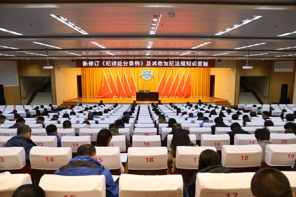 为深入学习贯彻新修订《中国共产党纪律处分条例》,严明党的政治纪律和政治规矩,配合学院干部作风大整顿活动,进一步推进学院党风廉政建设和反腐败工作,学院纪委于10月10日下午3点在图书馆报告厅开展了新修订《纪律处分条例》及其他党纪法规知识答题活动。学院领导班子及144名副科级以上干部参加了此次答题。