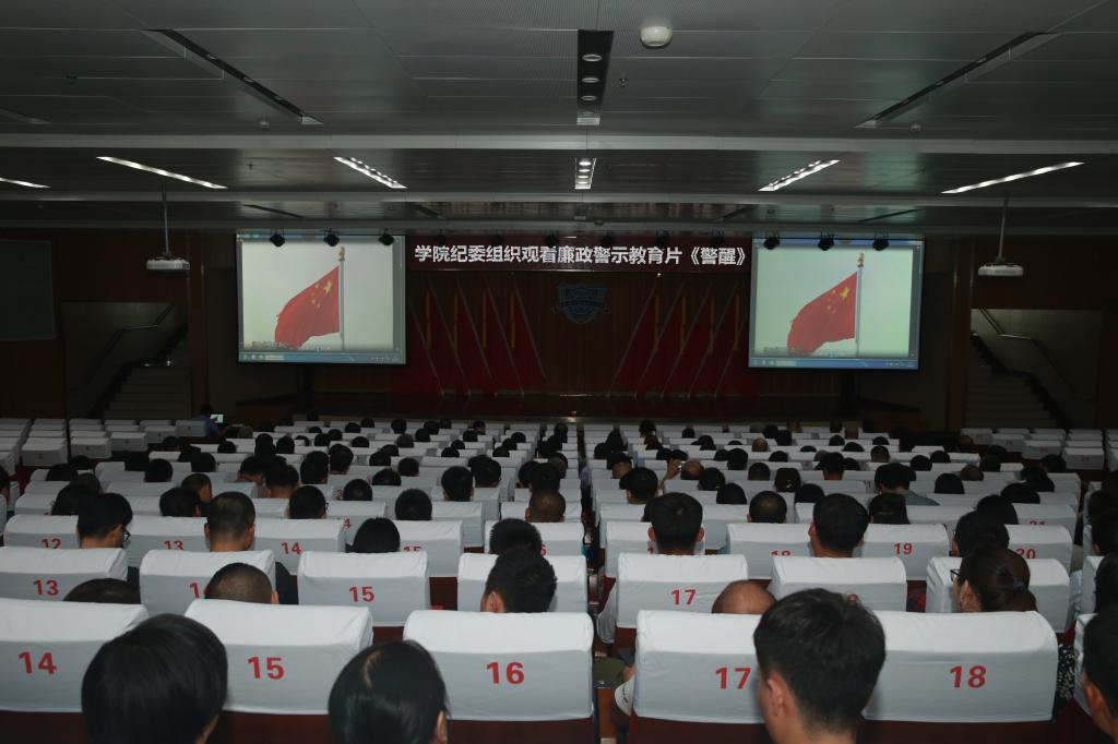 为深入贯彻落实省纪委十一届三次全会关于“深入开展纪律教育,凡查结的党员领导干部违纪违法案件都要在本地本部门开展警示教育,用好反面教材,举一反三,以案明纪,让党员干部为镜鉴”的部署要求,配合吉林省和学院作风大整顿活动,切实增强广大党员的廉洁意识,转变作风,营造风清气正的校园政治生态。根据省纪委和学院党委的统一安排,学院纪委于9月14日下午2点在图书馆报告厅组织学院全体党员观看了廉政警示教育片《警醒》。