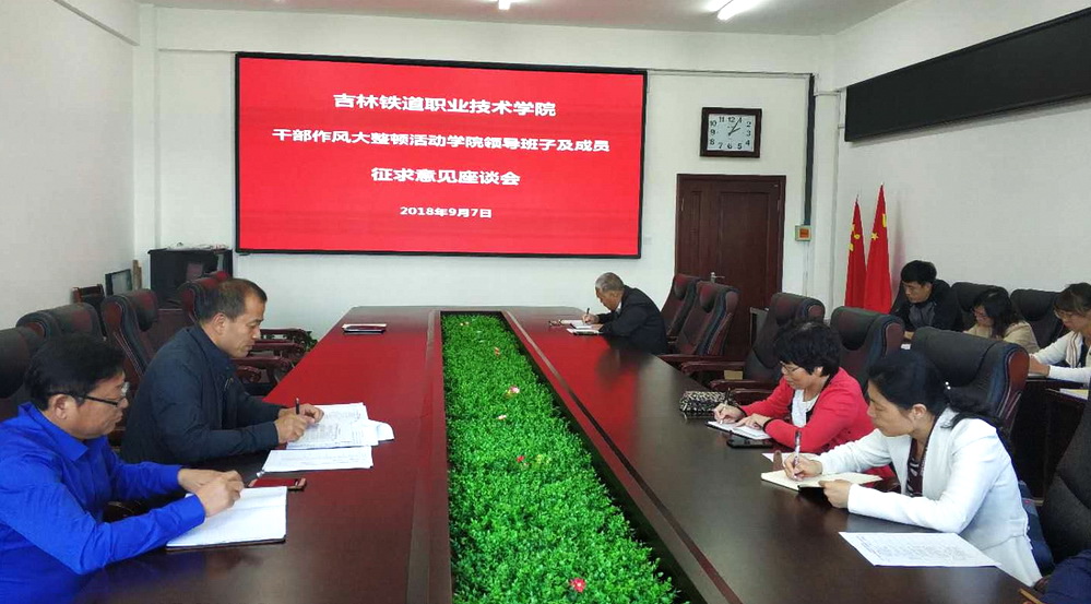 14:00,学院在行政楼第一会议室召开干部作风大整顿活动学院领导班子及成员征求意见座谈会,参加座谈会的成员有中层干部代表、高级知识分子代表、民主党派代表、科级干部代表、一线教师及管理服务人员代表。干部作风大整顿领导小组办公室成员党委组织部部长刘本基、纪检监察处处长侯占峰参加会议。刘本基同志主持会议。