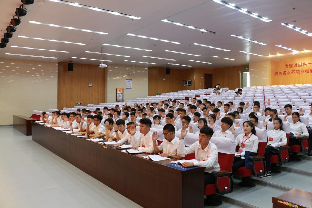 共青团吉林市委组织部曲彤部长作了讲话。他指出,近年来,学院一直坚持“根植铁路,立足吉林,服务全国,面向世界”的办学定位,积极培养职业精神和职业技能深度融合的高水平、高素质技术技能型“两职两高”人才,为党和国家培养了一大批优秀的少年工匠,为吉林的经济社会发展做出了卓越贡献。他向学院共青团工作和全院青年提出希望:一是坚持用习近平新时代中国特色社会主义思想武装团员青年,创新加强思想政治引领;二是稳步推进团学改革,深化从严治团;三是扎实服务青年全面发展,组织动员广大团员青年建功新时代。