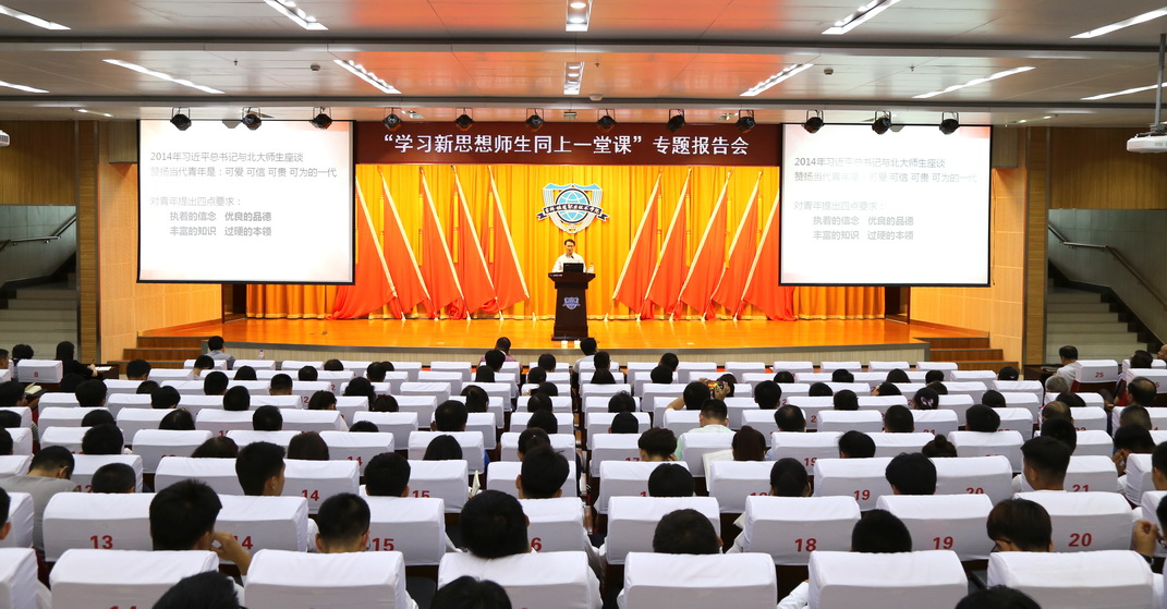 ,为落实省高校工委《关于组织开展“学习新思想高校师生同上一堂课活动”的通知》要求,引导广大师生深入学习宣传贯彻习近平总书记在北京大学师生座谈会上重要讲话精神,切实把讲话精神内化于心、外化于行,学院举办“学习新思想师生同上一堂课”专题报告会。