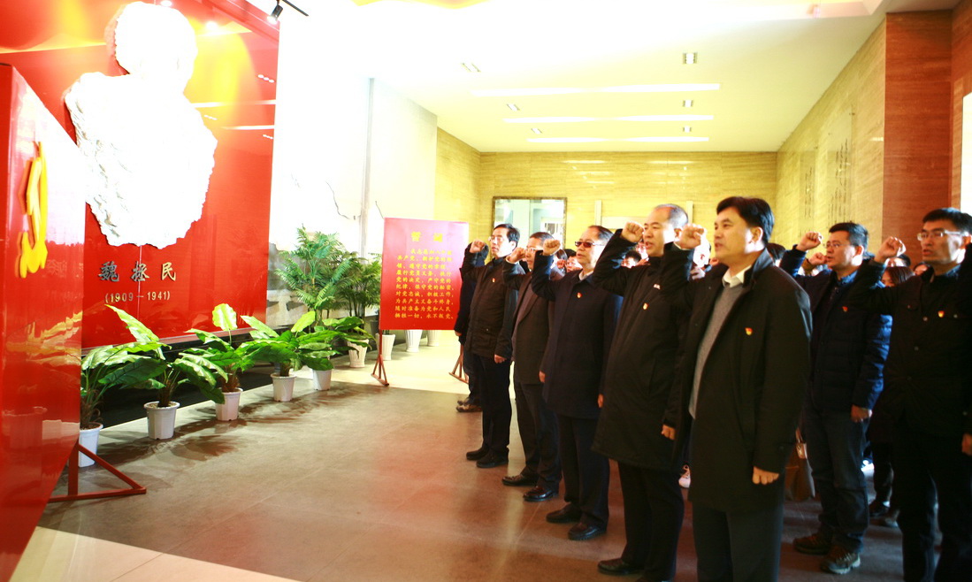 随后,全体党员来到革命烈士纪念馆,在抗联英雄魏拯民雕像前,由机关党总支组织委员王建军同志领誓,在庄严的党旗下重温了入党誓词,洪亮的誓言回荡在纪念馆大厅。在讲解员的带领讲解下,全体党员干部参观学习了抗联英雄魏拯民的英雄事迹。