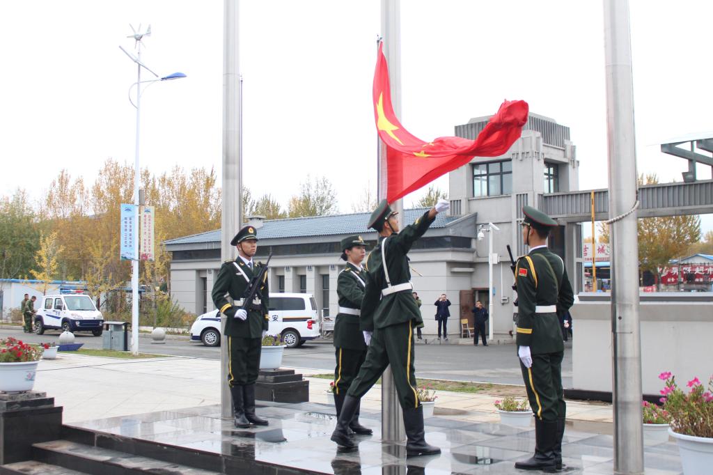 7时20分,学院国旗护卫队迈着铿锵的步伐护送国旗入场。伴随着庄严雄壮的国歌声,鲜艳的五星红旗冉冉升起,在蓝天的辉映下随风飘扬,全体师生庄严肃立,面向国旗行注目礼。