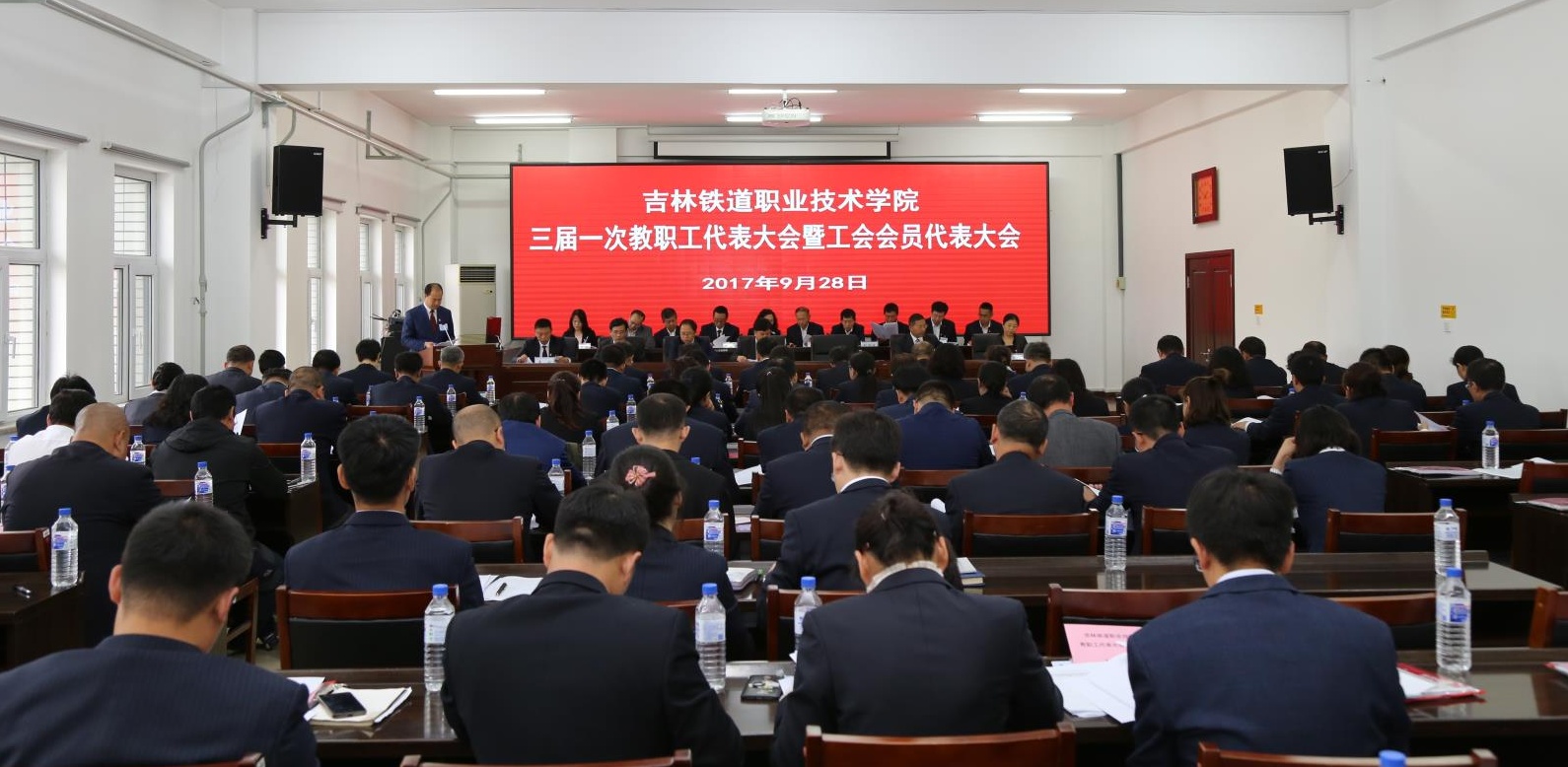 学院三届一次教职工代表大会暨工会会员代表大会,是在学院深入贯彻落实党的十八大和十八届三中、四中、五中、六中全会精神,学习贯彻落实习近平总书记系列重要讲话精神和治国理政新理念新思想新战略背景下,在喜迎十九大、落实我省第十一次党代会精神、贯彻落实学院第二次党员大会精神的新起点上召开的一次重要会议,是充分发挥广大教职工参政议政、统一思想、形成共识,全力推动学院各项事业发展的一次重要会议,必将进一步调动广大教职员工的积极性、主动性和创造性,同心同德、同向同行,勇往直前、开拓创新,为实现学院在党的领导下完成新时期历史发展任务而努力奋斗,以优异的成绩向党的十九大献礼。