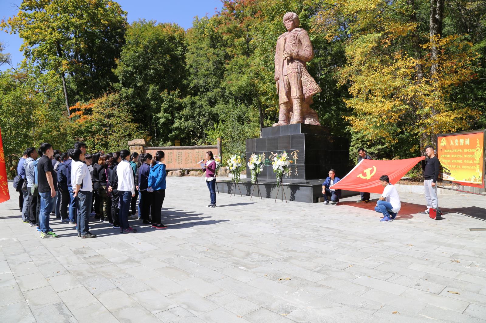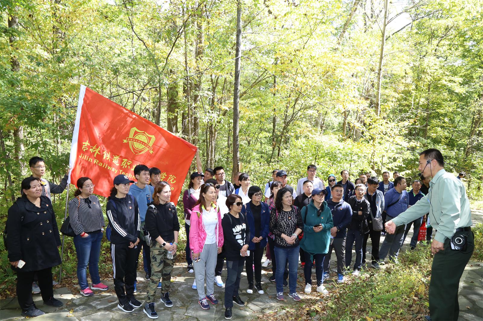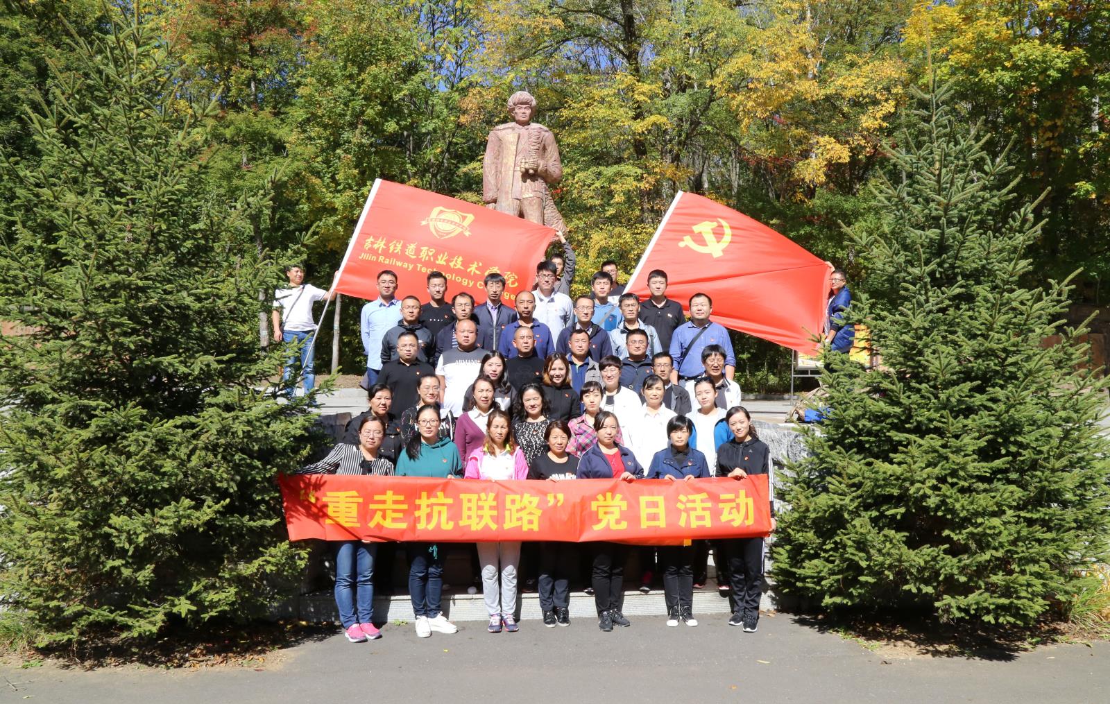 9月23日,学院机关党总支组织党员干部、入党积极分子50人前往吉林省桦甸市红石林区抗联密营,开展了重走抗联路党日活动,接受党性教育锻炼。