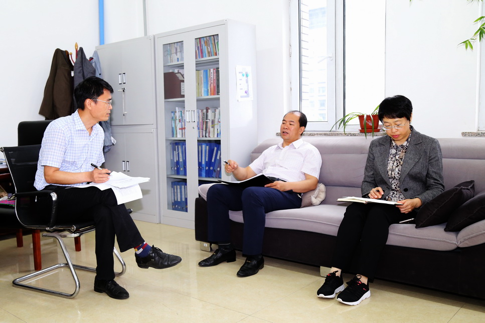 教科研处是学院新成立的职能部门,承担着教育教学研究、科学技术研究管理工作及政策研究咨询等职责。在调研过程中,教科研处马卫强处长对于2017年度本部门牵头负责的各项工作进展情况进行了汇报。