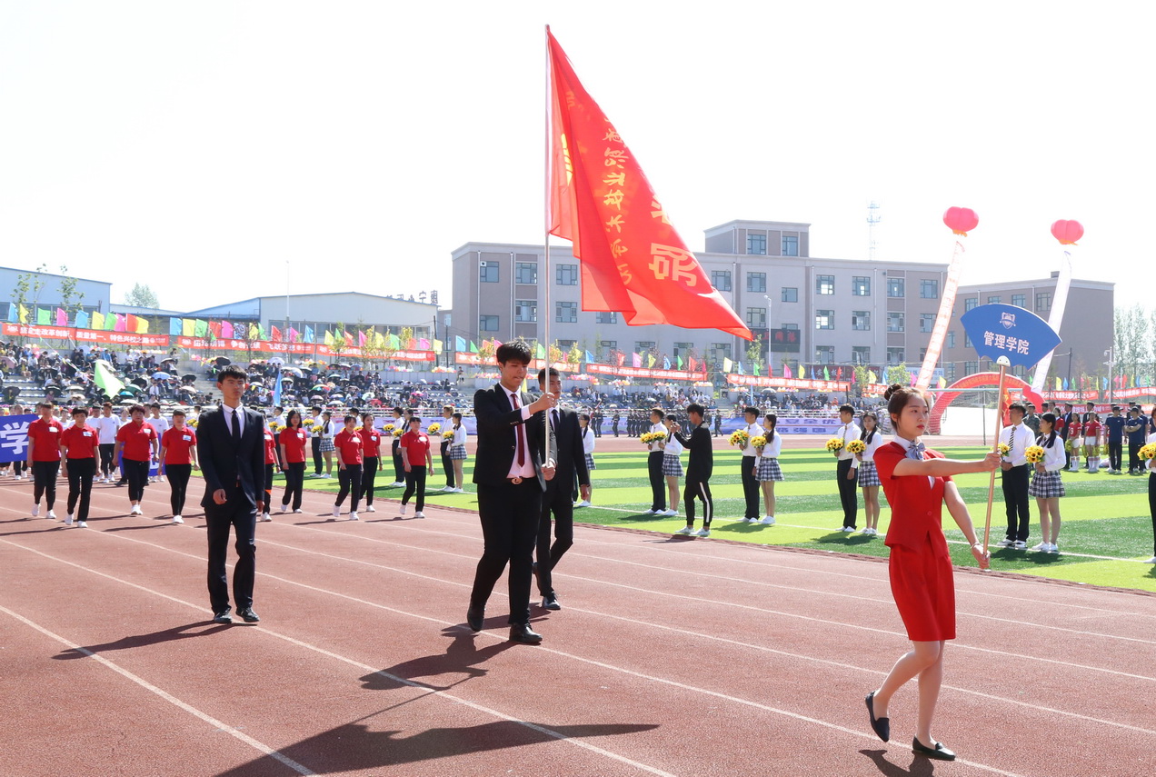 在开幕词中,曹炳志院长首先代表学院向大会的召开表示热烈祝贺,向为大会筹备工作付出辛勤劳动的全院教职工和广大同学们表示了亲切的问候和衷心的感谢。他指出,体育精神体现了人类战胜极限的渴望,激发了人类与时俱进的潜能,体育精神是我们努力学习的动力,是战胜困难的勇气,是迎接成功的自信和拥抱明天的力量。他强调,体育工作是学院教育教学工作的重要组成部分,是落实立德树人根本任务、培养合格建设者和可靠接班人的重要举措和必然要求。学院始终高度重视体育工作,在建设新校区时,投入7000万元建设了省内高校中最大的大学生活动中心,又投入近3000万元建设了室外篮球场、排球场、网球场及体育设施。他指出,学院响应国家号召,组织学生“走出宿舍、走下网络、走向操场”;倡导“我运动、我健康、我快乐”的生活方式;树立“每天锻炼一小时,健康工作五十年,幸福生活一辈子”的生活理念;举办了两届阳光体育节,开展了丰富多彩的体育活动。他表示,学院今后继续要深化体育教学改革,组建好学生乐于参与的各项训练队,深入开展好体育第二课堂活动;要构建阳光体育、特色体育和竞技体育三位一体的工作格局,充分发挥大学生活动中心等基础设施作用,营造良好的体育氛围,为使整个校园处处洋溢着青春,处处充满着活力而努力。最后,他指出本届运动会,是落实学院第二次党员大会精神,推动学院新一轮振兴发展的誓师大会;是对学院体育工作的一次全方位检阅,对全院师生精神风貌和体育教学成果的一次多角度展示的隆重盛会。他希望,广大教职工为促进学院新的发展目标早日实现,为培养两职两高人才,积极投身到“创特色、创品牌、创一流”活动之中,积极投身到体育锻炼活动之中;希望全体同学既要志存高远、勤奋学习,更要锻炼体魄、强身健体;希望全体运动员、裁判员,本着“友谊第一、比赛第二”的原则,严格遵守竞赛规则,发扬吃苦耐劳、顽强拼搏、团结互助的精神,赛出竞技水平,赛出道德风尚,赛出个性风采。