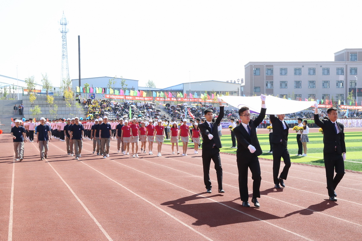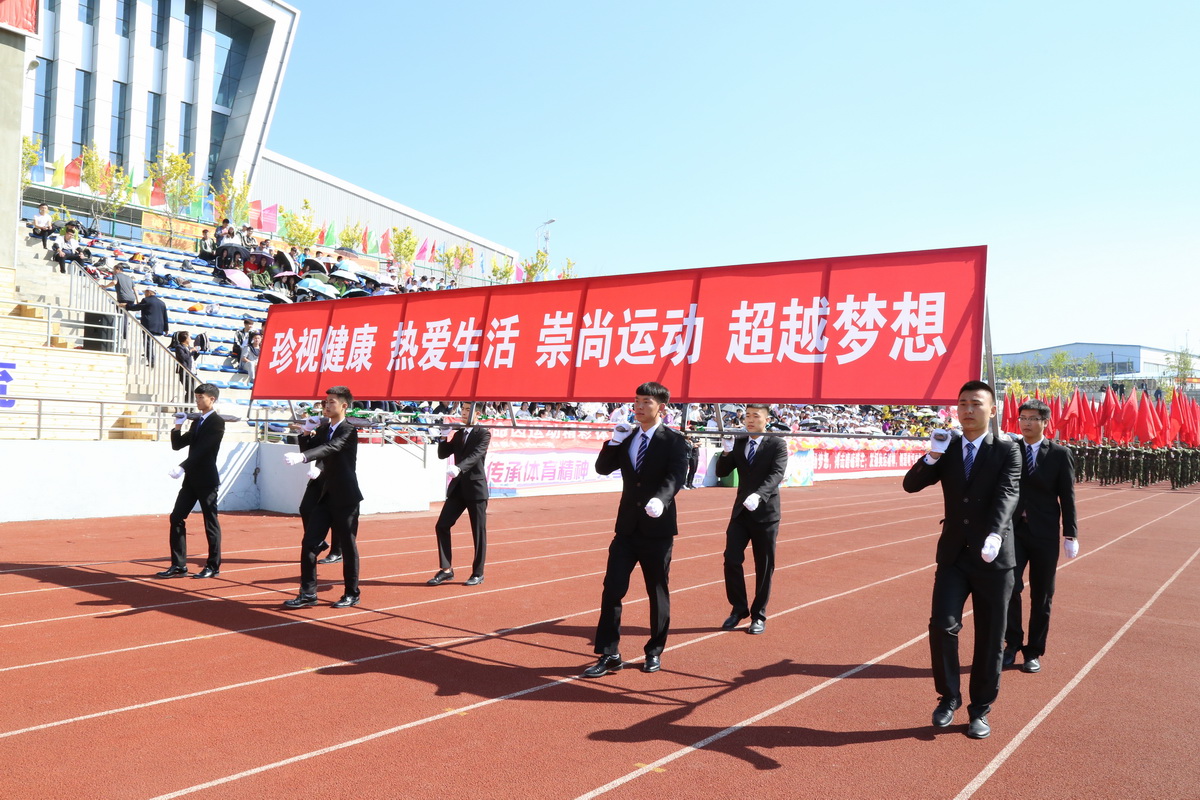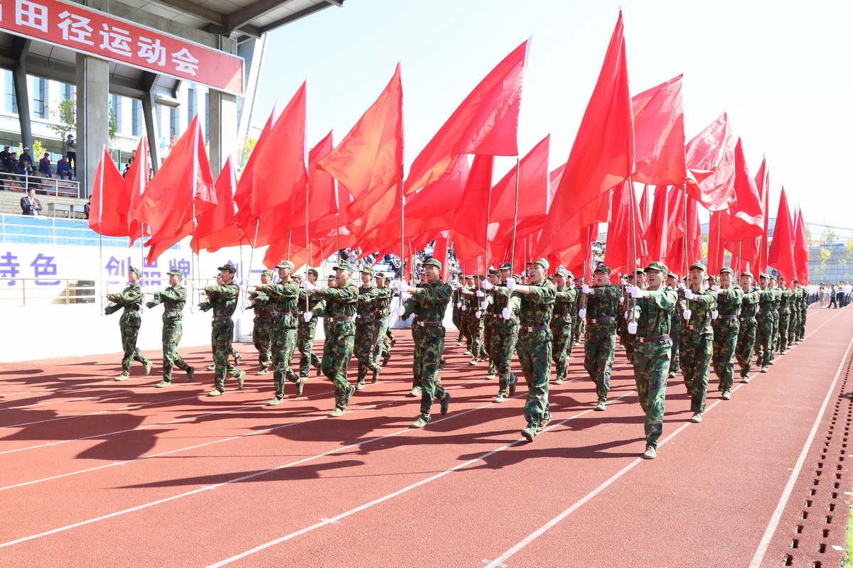 8:00,伴随着雄壮的运动员进行曲,包括国旗护卫队、彩旗队、花束队、各总支代表队、各分院师生代表队等在内的检阅队伍依次走过主席台,接受大会检阅。受检阅人员服装整齐,精神饱满,口号响亮,展现了学院师生勇往直前、积极向上的精神风貌。
