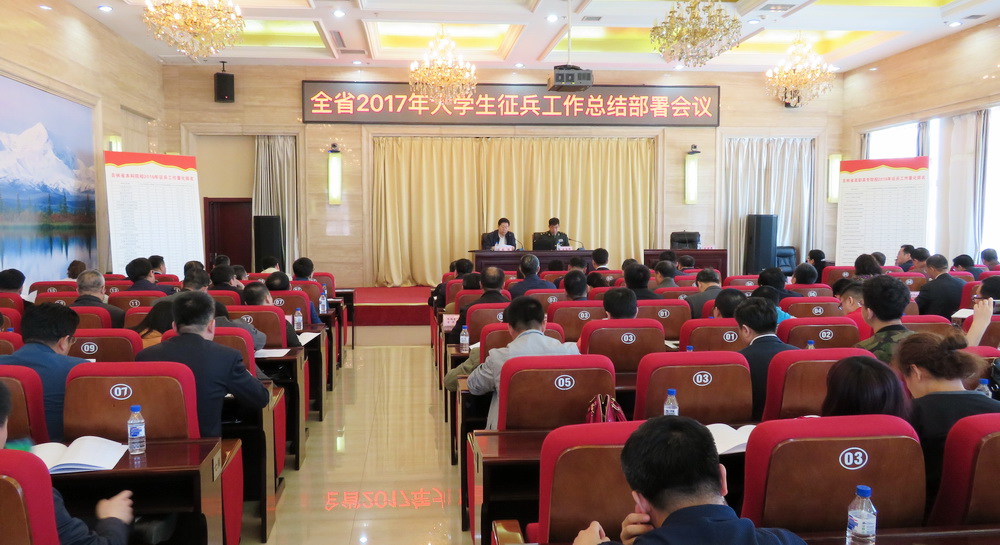 上午,全省2017年大学生征兵工作总结部署会议在省教育宾馆举行,62所高校主管征兵工作的领导及学生工作部、就业处相关部门负责人参加了会议。会议由吉林省教育厅副厅长、高校工委副书记岳强主持。会上,长春大学、吉林建筑大学城建学院和吉林铁道职业技术学院三所高校作经验交流发言,岳强副厅长对全省2017年高校大学生征兵工作进行了总结部署,省军区副司令员石佳坤少将做了国防教育专题报告。我院党委副书记徐彤宝、学生工作部部长刘树全及就业招生处副处长刘锡权参加了本次会议。本次会议对全省62所高校拟定了2017年征兵分配计划任务,我院拟分配征兵任务100人。