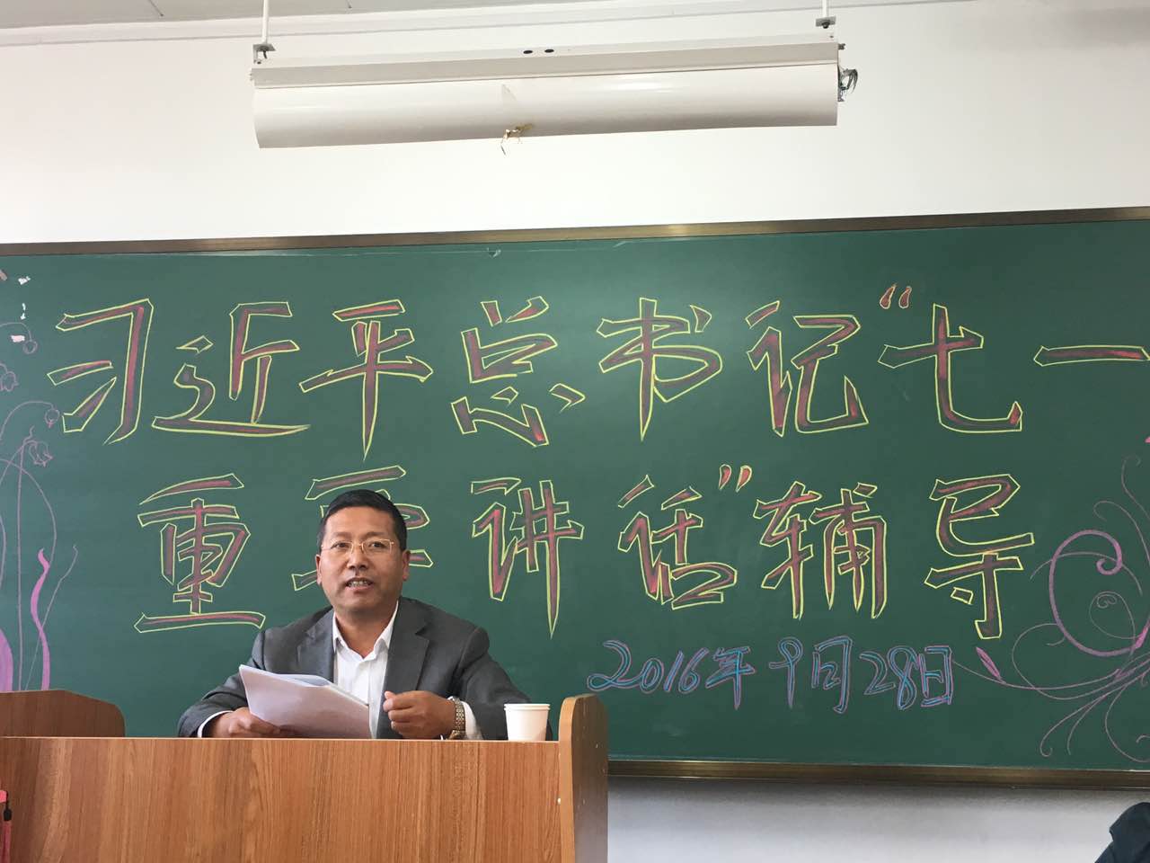 为学习贯彻习近平总书记在庆祝中国共产党成立95周年大会上的讲话精神,统一教职工思想认识,推动学院前进发展,9月28日下午3时,学院纪委书记徐彤宝同志在教学楼813教室,为经济管理系和计算机科学技术系的全体教师作学习“习近平总书记七一重要讲话”专题辅导。