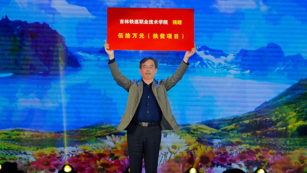 随后,在安图县活动中心举办了“脱贫攻坚,你我同行”捐赠仪式曁慰问演出,我院田雷副院长代表学院全体师生上台向安图县捐款。