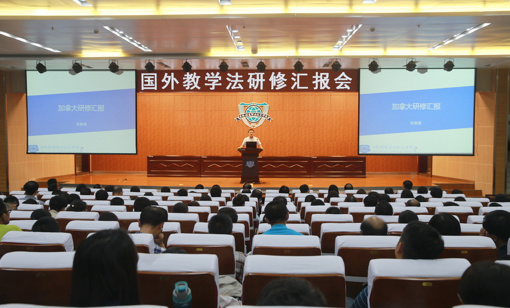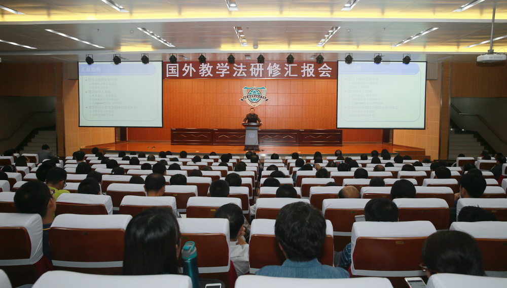 9 月13日 下午,学院在图书馆报告厅举行了“国外教学法研修汇报会”,学院院长曹炳志、副院长王华、全体教师、机关干部参加了会议。会议由人事处处长王建军主持。