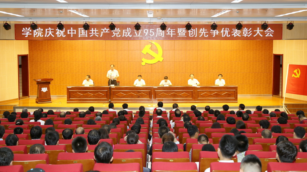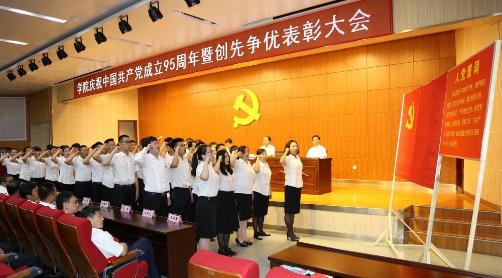 正当全党上下深入学习习近平总书记系列讲话精神,扎实开展“两学一做”学习教育活动,协调推进“四个全面”重大战略布局之际,恰逢我们伟大的中国共产党95华诞,学院在图书馆报告厅隆重召开庆祝中国共产党成立95周年暨创先争优表彰大会。学院领导班子成员,受表彰的离退休老党员,全院在职教工党员、学生党员及入党积极分子代表近五百人参加了会议。会议由学院党委副书记曹炳志主持。会上,45名新党员面向党旗进行了入党宣誓,学院党委书记于俊秋发表了讲话,院长周云龙宣读了表彰决定,学院领导为受到表彰的创先争优先进集体和优秀个人颁发了奖状和证书,受到表彰的先进集体代表铁道运输系党总支书记李生同志,受到表彰的优秀个人代表铁道工程系教师李春静同志分别进行了发言。