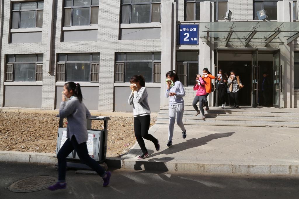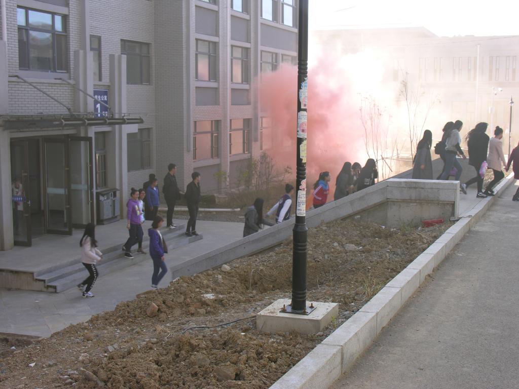、14日中午分别在学生公寓举行了消防疏散演练。
