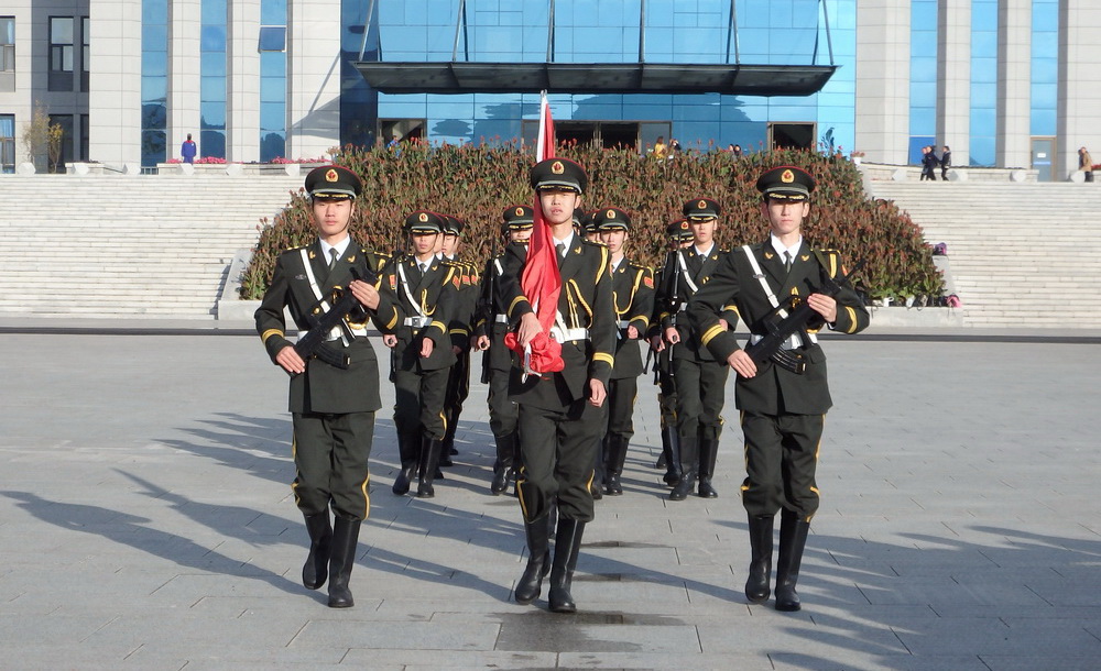 7:20,全体师生在教学楼前中心广场列队集合完毕。7:30,伴随着激昂的《五星红旗迎风飘扬》乐曲,升旗仪式正式开始。迎着朝阳,学院国旗护卫队成员迈着铿锵的步伐来到了国旗台下,全场肃穆。在庄严的国歌声中,升旗手振臂一挥,鲜艳的五星红旗迎风招展、徐徐上升,在阳光的映照下、在师生的注目中,高高飘扬在学院上空。