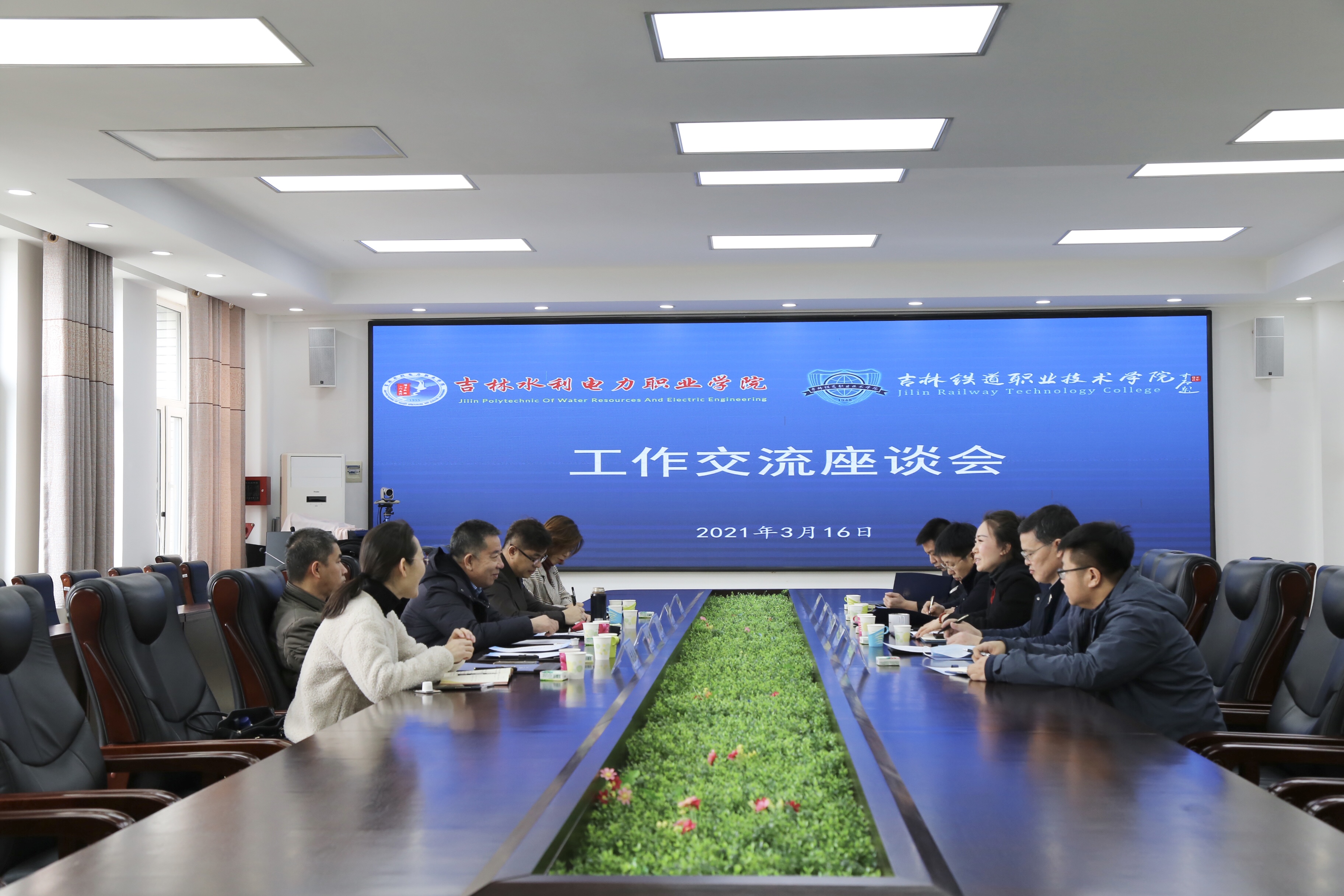 3月16日上午,吉林水利电力职业学院督学张超英、基建处处长刘峰、河湖长培训处处长邵凯、国际交流与合作处副处长陈秀杰、基础部副主任田微来我校考察交流。学校培训中心主任王建军、公共教学部党总支书记侯春奇、后勤管理处党总支书记崔亮、国际交流中心主任盛莉参加交流座谈会,会议由盛莉主持。