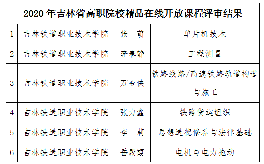 2020年7月,吉林省教育厅组织开展了精品在线开放课程认定工作,按照《关于开展2020年吉林省高职院校精品在线开放课程认定工作的通知》要求,经课程负责人申报,各教学单位推荐,教务处审核,学校推荐了《单片机技术》等6门课程参加评选,全部通过省级认定,被评选为吉林省高职院校精品在线开放课程。