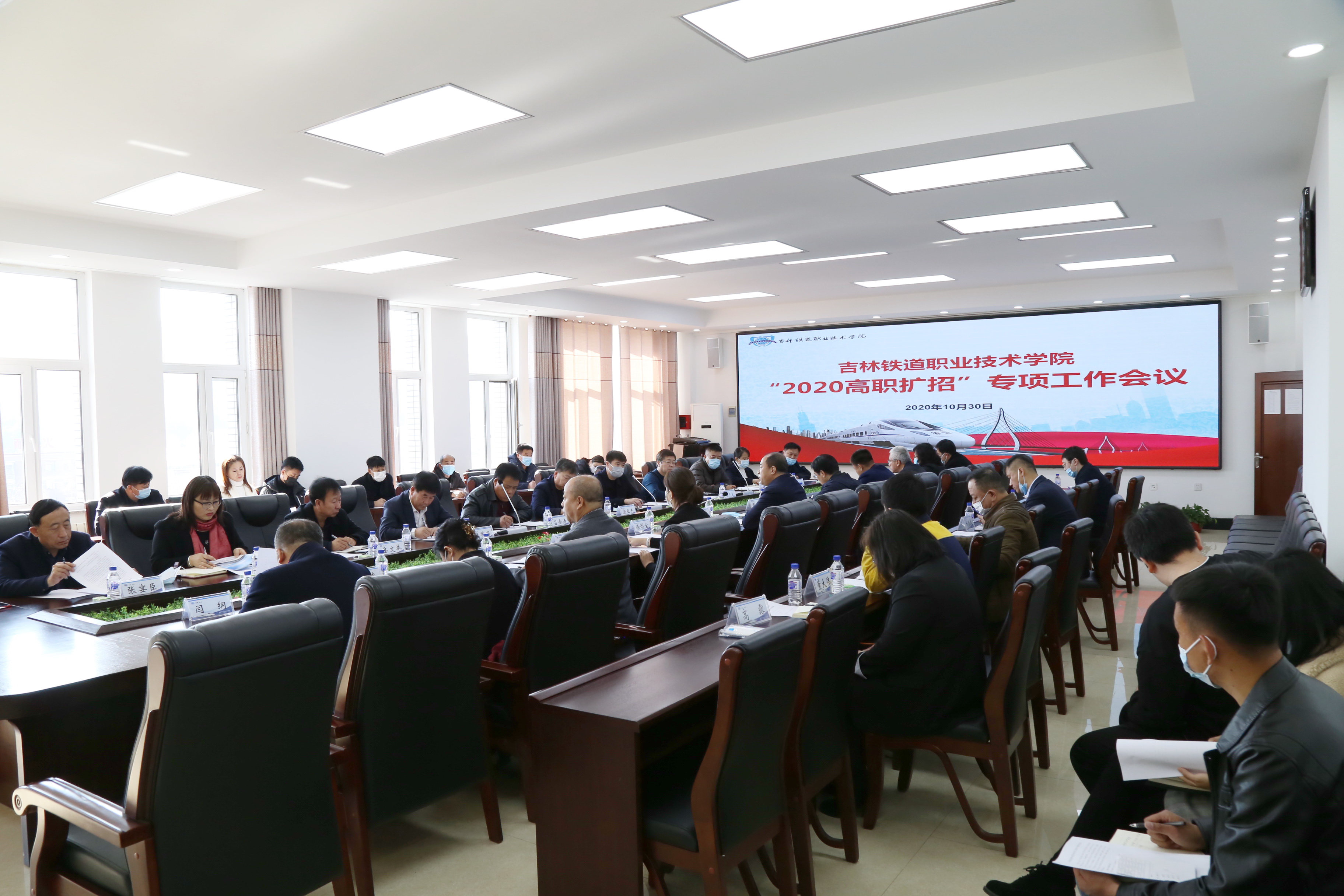10月30日,学校办公楼三楼第二会议室召开了2020年高职扩招专项工作会议。学校邀请了舒兰市职业高级中学校长房亚杰、磐石市职业教育中心校长王云龙、永吉县实验职业高中校长吕会清、伊通满族自治县职业技术教育中心校长杜秀国、安图县职业教育中心校长秦元春、桦甸市职业教育中心工会主席兼招生办主任李晓波、蛟河市职业教育中心副校长岳文举、长春市九台区职业技术教育中心副校长张宴臣、双辽市职业中专招生办主任巫成彦等五个乡村发展学院分院和四所中高职衔接学校领导及主管招生工作负责人21人来校参会,我校校长曹炳志、党委副书记徐彤宝、副校长田雷、纪委书记苏春年、副校长李欣以及相关部门负责人参加了会议。会议由曹炳志主持。