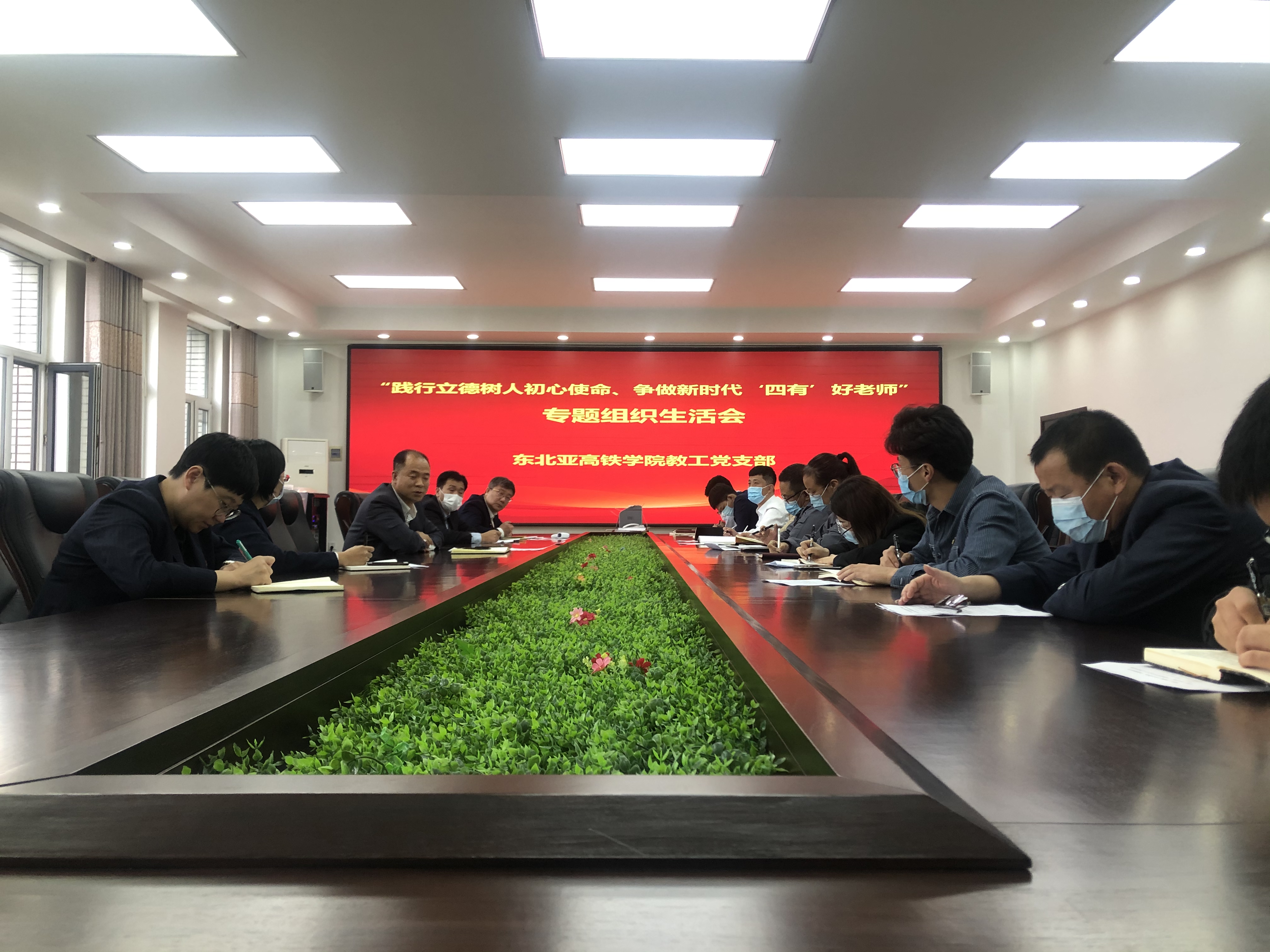 为更好的贯彻落实习近平总书记视察吉林时重要讲话精神,按照吉林省委和省教育工委工作部署及学校党委要求,东北亚高铁学院教工党支部于9月18日开展了以“践行立德树人初心使命、争做新时代‘四有’好老师”为主题的专题组织生活会。