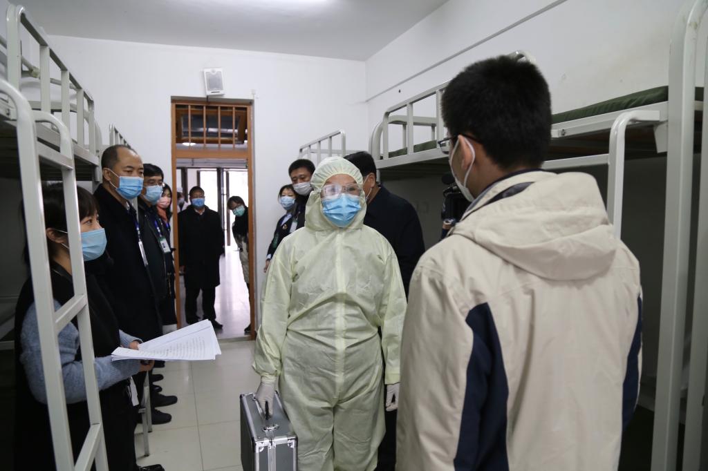 | 测温工作人员在集中医学隔离观察区对“留观人员”进行体温检测 |