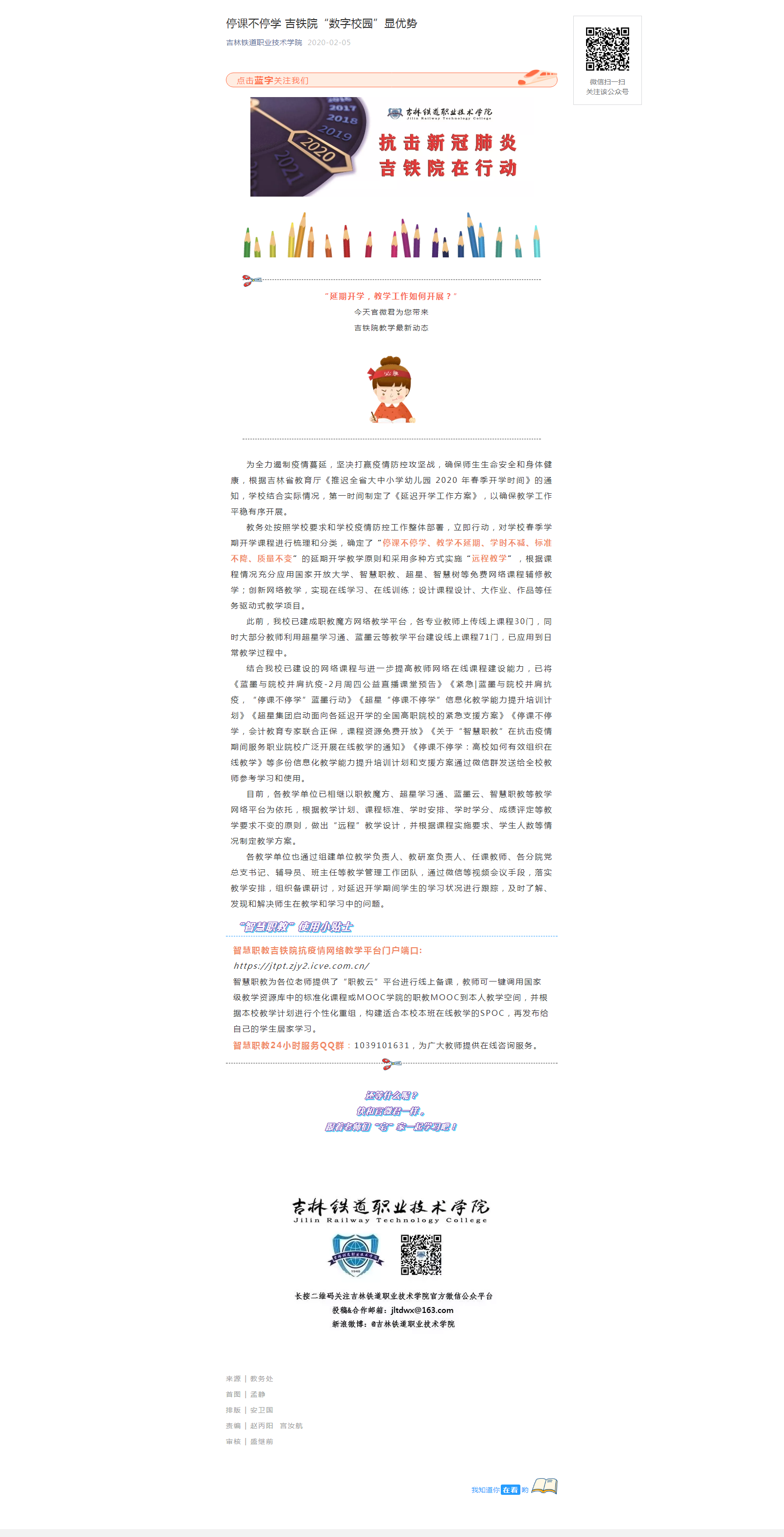 【抗击新冠肺炎 吉铁院在行动】停课不停学 吉铁院“数字校园”显优势