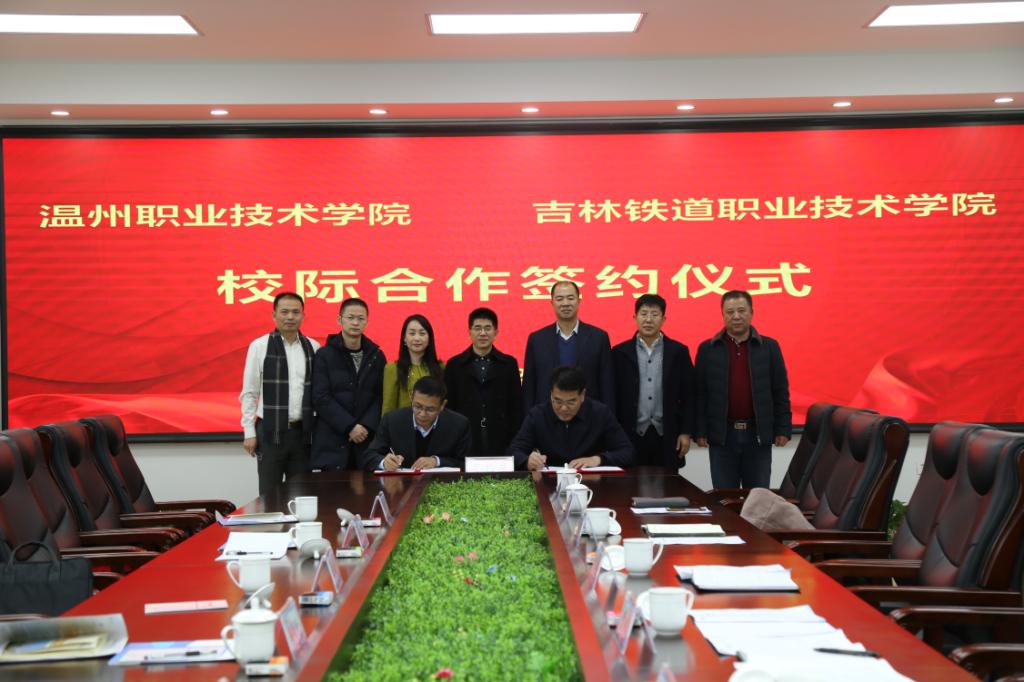 12月9日,温州市政府办公室副主任、吉林市政府副秘书长方培雷和温州职业技术学院党委书记王靖高一行来我校考察交流,并与我院签署《温州职业技术学院-吉林铁道职业技术学院校际合作协议》。学校党委书记胡越平,党委副书记、校长曹炳志出席座谈会,会议由胡越平主持。