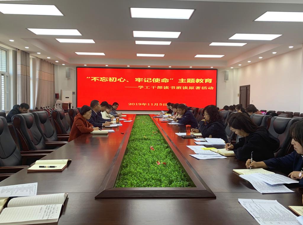 11月5日下午,在行政办公楼第二会议室,学工系统召开“不忘初心、牢记使命”主题教育——学工干部读书班读原著活动。学校党委副书记徐彤宝、学生工作处全体、校团委全体、各学院党总支书记、学办主任、分团委书记、新疆籍辅导员参加了此次主题教育活动。