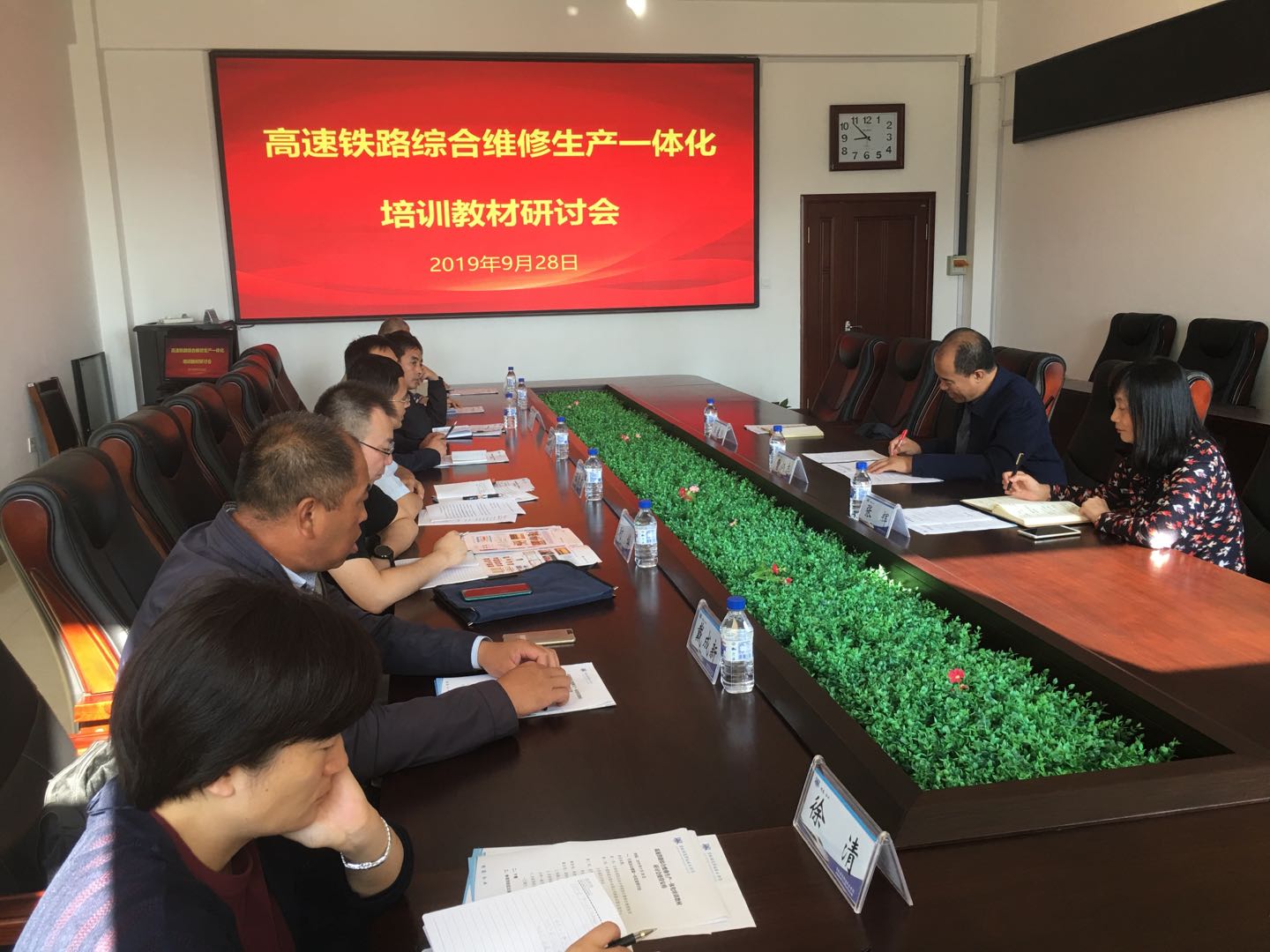 为适应国铁集团关于深化高速铁路综合维护一体化站段改革要求,让铁路院校人才培养和铁路现场职工培训尽快与企业改革接轨,切合实际的编写出一套有针对性的专业教材。我校铁道信号学院联合中国铁道出版社有限公司、沈阳局集团公司、沈阳和长春高铁基础设施段、长春供电的、长春工务段等多家单位,于2019年9月28日在我校召开“高速铁路综合维修生产一体化培训教材研讨会”。