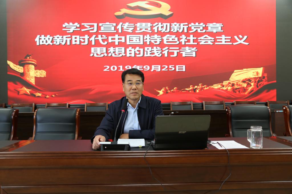 会上,胡越平领学了《中国共产党章程》。并做了《学习宣传贯彻新党章做新时代中国特色社会主义思想的践行者》的专题辅导,他回顾了中国共产党从党的一大到十九大党章的形成发展过程,详细讲解了学习贯彻党章的背景和意义。并且对如何学习贯彻落实《中国共产党章程》提出了四点要求:一是要认真学习;二是要自觉遵守;三是要坚决维护;四是要真正运用。