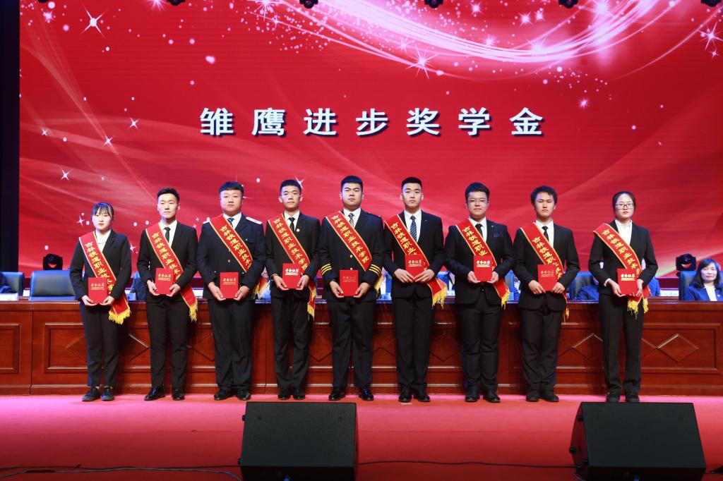 | 受表彰的雏鹰奖进步学金获得者代表领奖 |