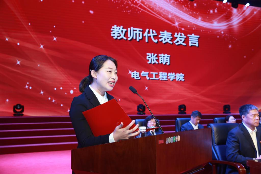 随后,新生代表铁道运输学院铁道交通运营管理1909班林子涵同学、在校生代表学校团委副书记铁道车辆学院动车组检修技术1707班白明理、教师代表电气工程学院张萌同志分别发言。