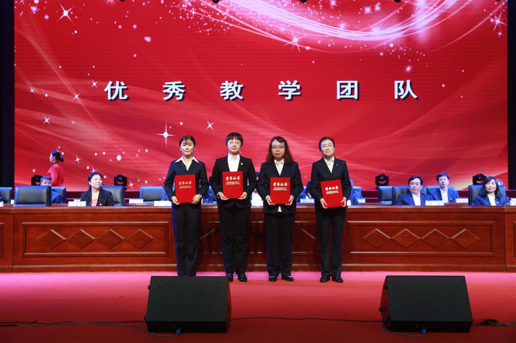 | 受表彰的教学管理工作先进教研室代表领奖 |