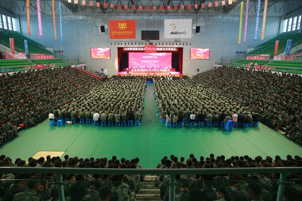 曹炳志发表题为《带着初心去追梦,谱写青春新篇章》的讲话。在讲话中他代表全院师生向来自祖国各地的新同学表示了最热烈的欢迎。他指出,今年的开学典礼时点特殊、意义重大。今年的开学典礼是学校全面贯彻全国教育大会、吉林省教育大会精神、落实《国家职业教育改革实施方案》,奔向新一轮振兴发展的一次开学典礼。全体2019级同学,既是祖国七秩华年、继往开来的首批学子,也是吉铁院被评为“全国优质校”和全国首批1+X证书制度试点院校后迎来的首批新同学。