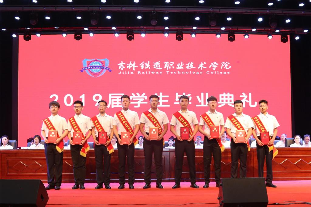 毕业典礼上,田雷宣读了《吉林铁道职业技术学院准予毕业决定》、《吉林铁道职业技术学院优秀毕业生表彰决定》和《吉林铁道职业技术学院聘任毕业生担任校友联络员的决定》。学校领导分别为毕业生代表、优秀毕业生代表颁发证书,为校友联络员颁发聘书和校友卡,全场报以热烈的掌声。