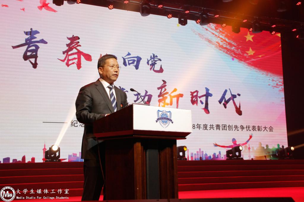徐彤宝致辞。他向全校青年朋友送去节日的祝福,并向工作在共青团战线上的师生和长期以来关心和支持共青团工作的有关单位和部门表示感谢。他指出,五四运动,是中国近代史上具有里程碑意义的重大事件,五四精神是爱国主义精神和革命精神的具体体现,只有真正认识并理解好五四精神的时代内涵,从历史中汇聚力量,在前进中坚定方向,我们才能更加步履铿锵、勇毅笃行。他鼓励并倡导全校青年学生,以五四精神为指引,坚定理想信念,以五四先驱为楷模,增强爱国本领,以五四核心为动力,创新时代精神。学校领导为2018年度受表彰的先进集体和优秀个人进行了颁奖,赞扬他们不畏艰辛、勇于拼搏的时代精神,嘉奖他们百折不挠、砥砺奋进的优秀品质。