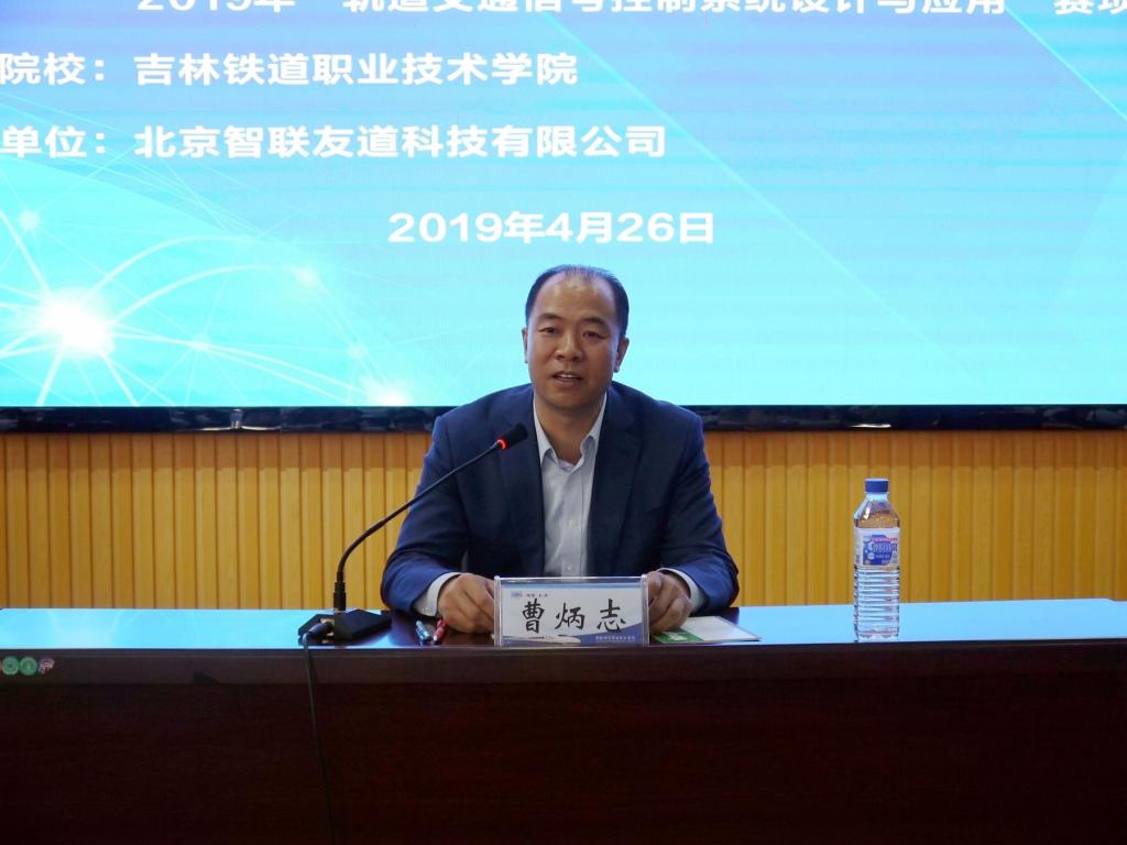 会上,曹炳志代表吉林省分赛区执委会、“轨道交通信号控制系统设计与应用”赛项执委会和承办院校致词,向远道而来的各位领导、专家和代表表示最热烈的欢迎和最诚挚的问候。曹炳志介绍了吉林市的市情。他提到,吉林青山碧水环绕,是雾凇之都,也是冰雪圣地,他欢迎大家常来吉林市。他指出,此次全国职业院校技能大赛,是全国高职组“轨道交通信号控制系统设计与应用”在我校举行的第二次比赛,今年又正逢新中国成立七十周年。因此,此次大赛具有重要意义、深远影响。参赛队伍多、规模大、水平高、实力强是此次大赛的显著特点。他强调,本次大赛,各个省、市、自治区的教育主管部门,尤其是拥有轨道交通信号专业的高职院校都格外重视。学校能够再次承办大赛既深感荣幸,又倍感责任和压力。但我们坚信在教育部大赛办、吉林省教育厅、中国职业教育技术学会轨道交通委员会的领导下,在北京智联友道的指导、帮助下,在全体参赛高职院校的共同努力下,大赛一定能够顺利举办,圆满成功。他阐释本次大赛的目标是“规范、公正、安全、有序、精彩、廉洁”,并承诺本次大赛我校将认真准备、精心组织、周密安排、热情服务,统筹安排、全面落实大赛的各项要求,全力落实大赛实施方案、赛场建设方案和试题保密方案等内容,细致把控各环节的调度,确保大赛安全、顺利进行。
