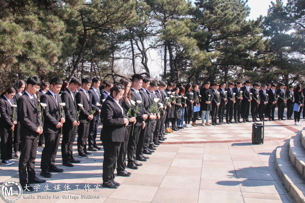 活动在革命烈士纪念塔前举行,学院国旗护卫队向革命烈士敬献了花圈,在巍峨肃穆的纪念塔下,在桑松翠柏间,全体人员默哀,表达哀思,缅怀革命先烈遗志,回忆百年前的那段艰苦岁月。