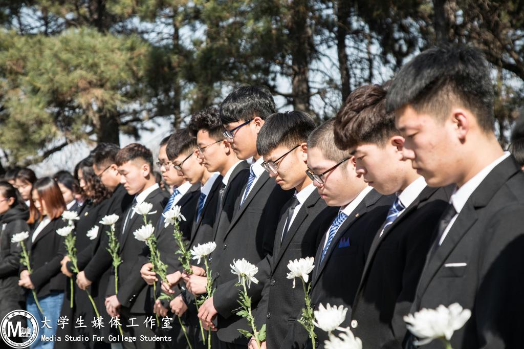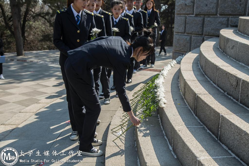 活动中,全体师生瞻仰烈士纪念塔,向烈士们依次敬献了鲜花,洁白的菊花围了一圈,在万物新生的初春中,寄托着对逝者无限怀念。