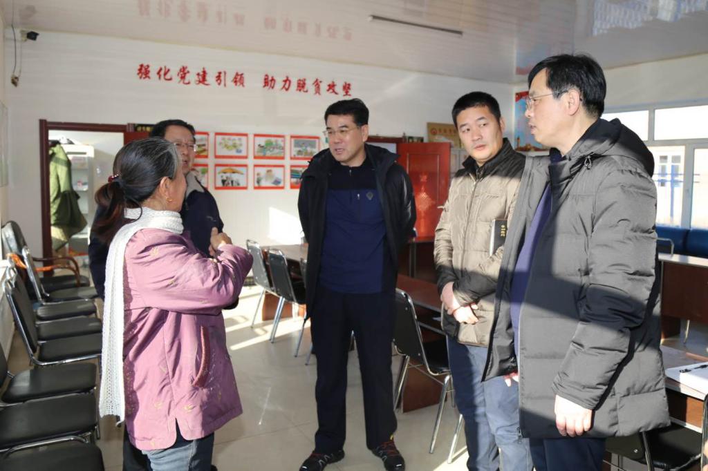 党委书记胡越平、副院长田雷、一拉溪镇副镇长张宏民、驻村第一书记鲁静波在村部研讨帮扶工作