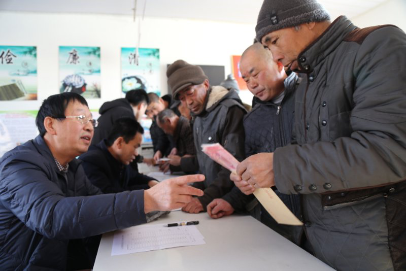 驻村干部和村会计向贫困户发放慰问金