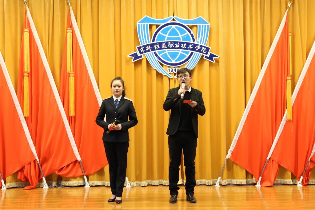 | 学生处周兴老师、铁道运输分院韩瑷卉同学主持比赛 |