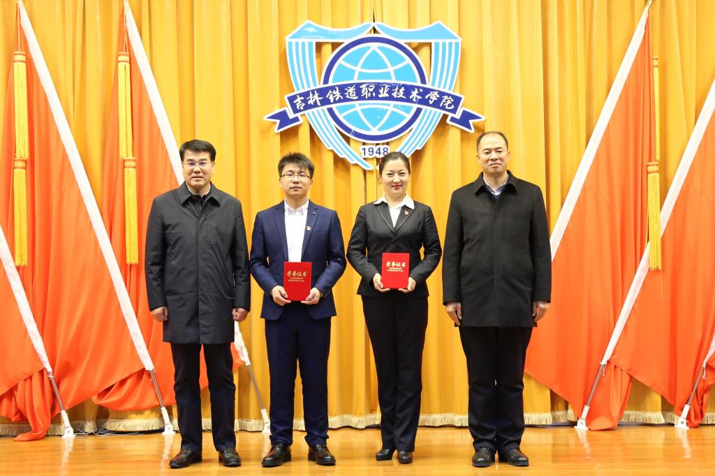 | 学院纪委书记苏春年、副院长李欣为获得三等奖的选手颁奖 |