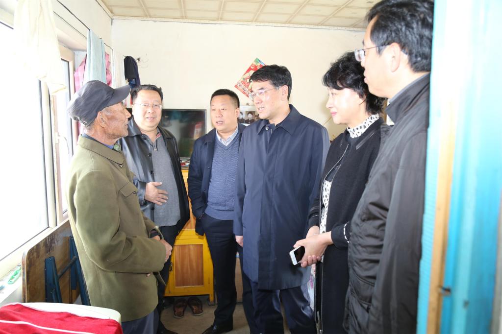 刚一入村,胡越平书记、田雷副院长和永吉县人民政府金华县长,就在一拉溪镇党委书记王凯、索屯村党支部书记李玉荣、村长刘占山和驻索屯村第一书记市安监局鲁静波处长、我院驻村工作队队员刘洪波等同志的陪同下,对两名包保帮扶的贫困户进行了走访,认真查看了贫困户的生活居住条件,询问了解了贫困户的经济收入情况、身体状况及致贫原因,提醒他们保重身体,鼓励他们勤劳致富。