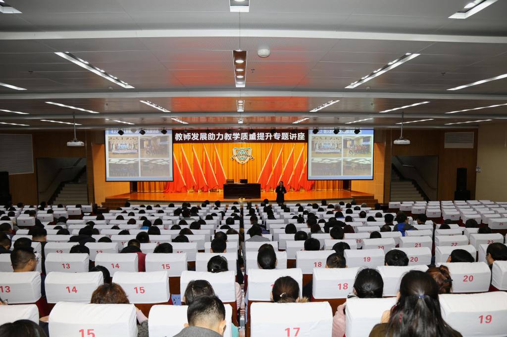 2018年10月31日下午,学院邀请延边大学教师发展中心郭艳春副主任到校,在图书馆报告厅举办了关于高校教师教学发展中心如何建设和运行,如何提高教师教学能力和教学质量的专题讲座报告会。学院副院长王华、副院长田雷、副院长李欣及全体教职工参加了本次报告会。报告会由人事处李原福处长主持。