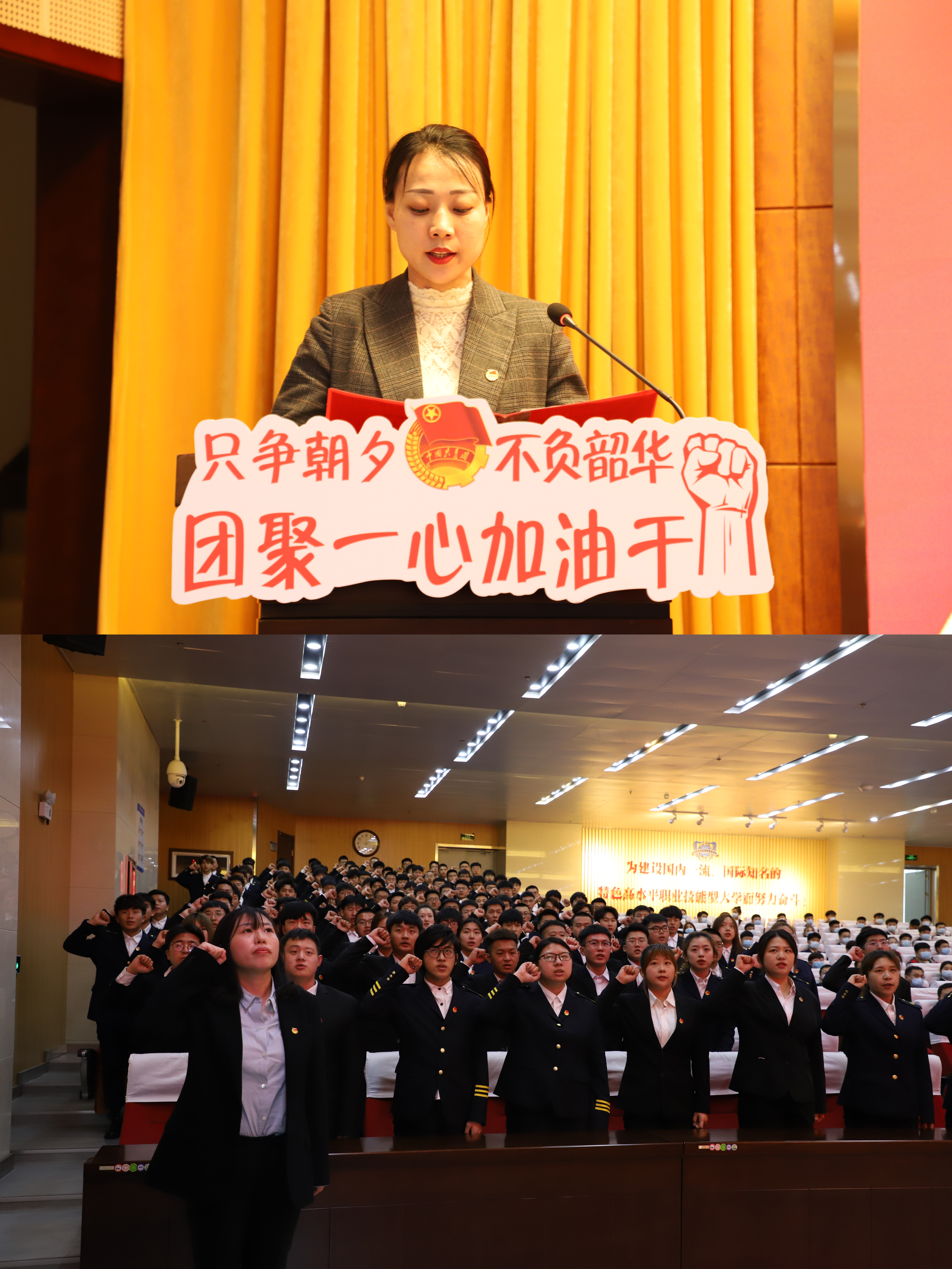 宋书记代表学校党委发表题为《肩负历史使命担当复兴大任—为建设中国特色、世界水平的职业技能型大学贡献青春力量》的讲话。宋书记在讲话中首先向受到表彰的先进集体和优秀个人表示了祝贺,向全校的青年朋友们致以诚挚的问候,对2020年度学校共青团工作给予了充分肯定。他深入解读了五四精神的时代内涵,并鼓励广大青年,要始终牢记习近平总书记的谆谆教导,坚定理想信念、练就过硬本领、矢志艰苦奋斗、锤炼高尚品格,勇敢肩负起时代和人民赋予的重任,让伟大的五四精神在中华民族伟大复兴的壮阔进程中放射出更加夺目的时代光芒。他向全校团员青年提出了几点希望:一要立大志,做中国特色社会主义共同理想的坚定信仰者,顺应时代大势、勇立时代潮流,书写无悔于时代的青春篇章;二要明大德,做当代中国爱国主义的忠实实践者,追求和推崇高尚的道德境界,坚守正确的价值观,在积极的道德实践中明德修身;三要成大才,做党和国家事业的合格建设者,珍惜大好时光、加强社会实践、立下愚公之志,在担当中历练,在尽责中成长;四要担大任,做走在时代前列的勇敢开拓者,把自己的前途与吉林振兴发展联系在一起,积极响应省委书记景俊海在吉林大学出席“创业有你 就在吉林”助力新时代吉林振兴发展首场宣讲报告会上对全省高校毕业生发出的邀请,不负青春韶华、情系白山松水,逐梦成长成才,在新时代吉林振兴发展实践中谱写青春华章。