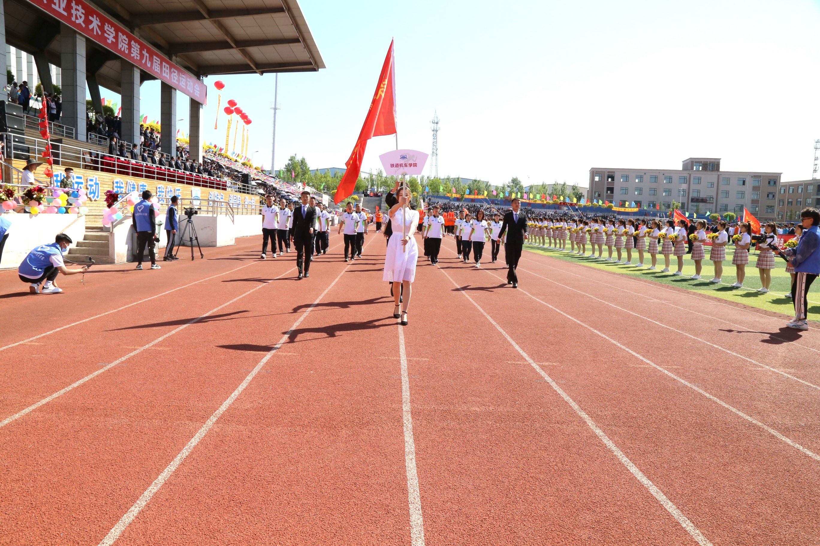 彩旗在晨风中飘扬,激昂的音乐在绿茵场上回荡,伴随着《运动员进行曲》的奏响,国旗护卫队、彩旗队、花束队、各总支代表队、各学院师生代表队依次走过主席台,接受大会检阅。受检阅人员步伐整齐、口号嘹亮,赢得了阵阵掌声。青春洋溢的笑脸、鲜艳夺目的花束无不展现出吉铁院人精神抖擞、朝气蓬勃的精神面貌和奋发有为的青春风采。各学院方阵结合庆祝建党100周年和自身专业特色等创意,为本次运动会奉献上了精彩的表演。