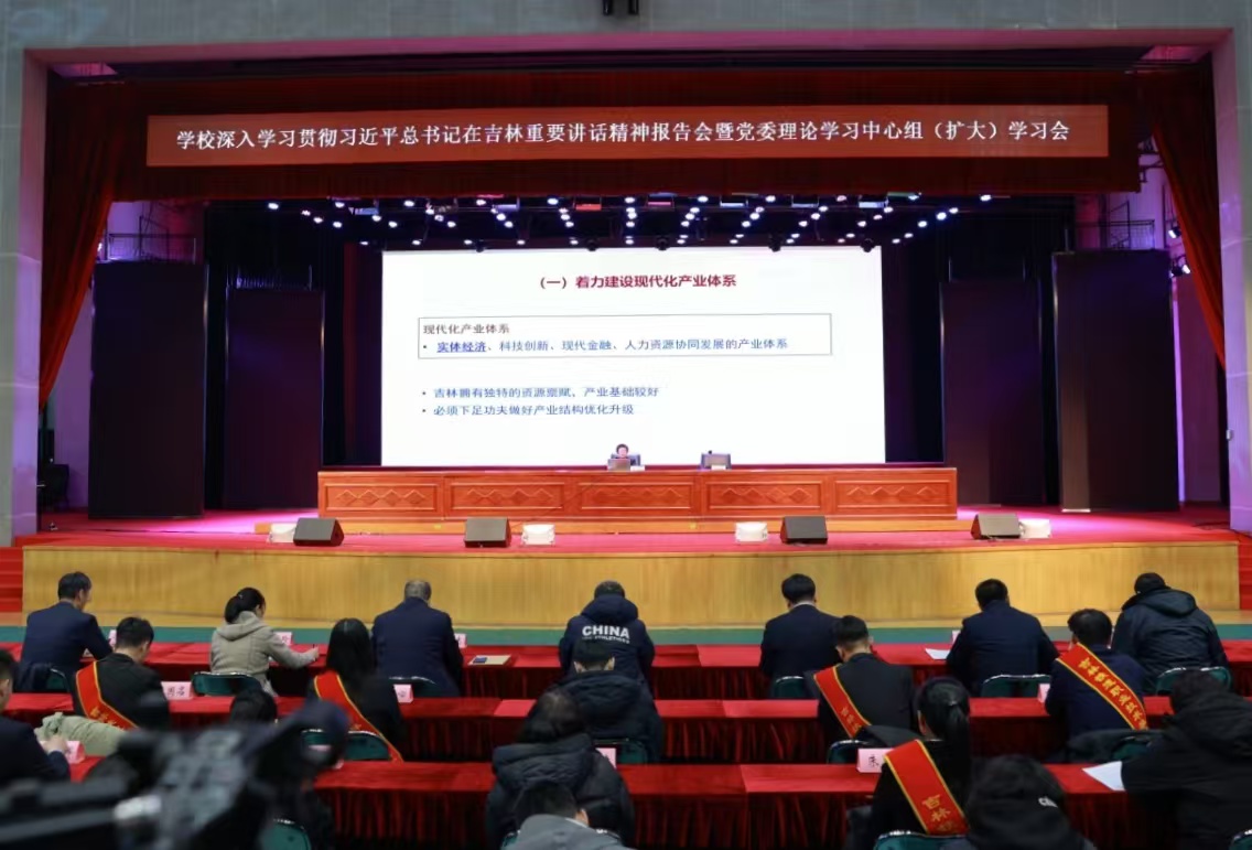 3月28日,学校在大学生活动中心召开深入学习贯彻习近平总书记在吉林重要讲话精神报告会暨党委理论学习中心组(扩大)学习会,党委理论学习中心组成员,全体教职工参加会议。党委副书记苏建国主持会议。
